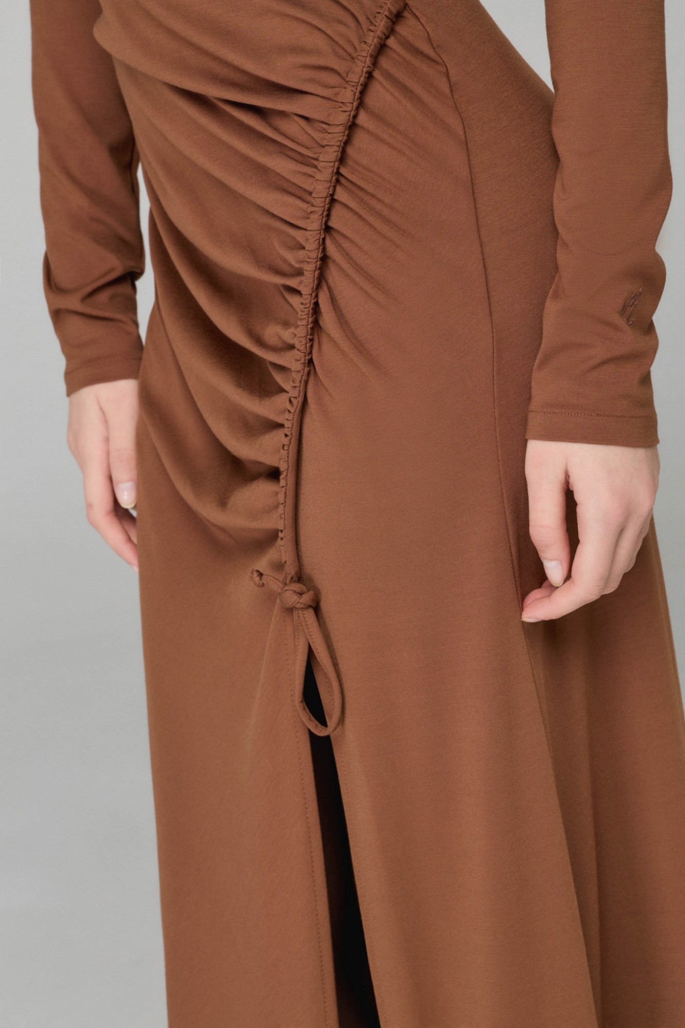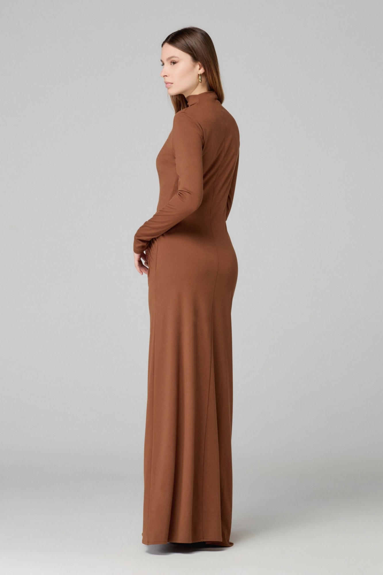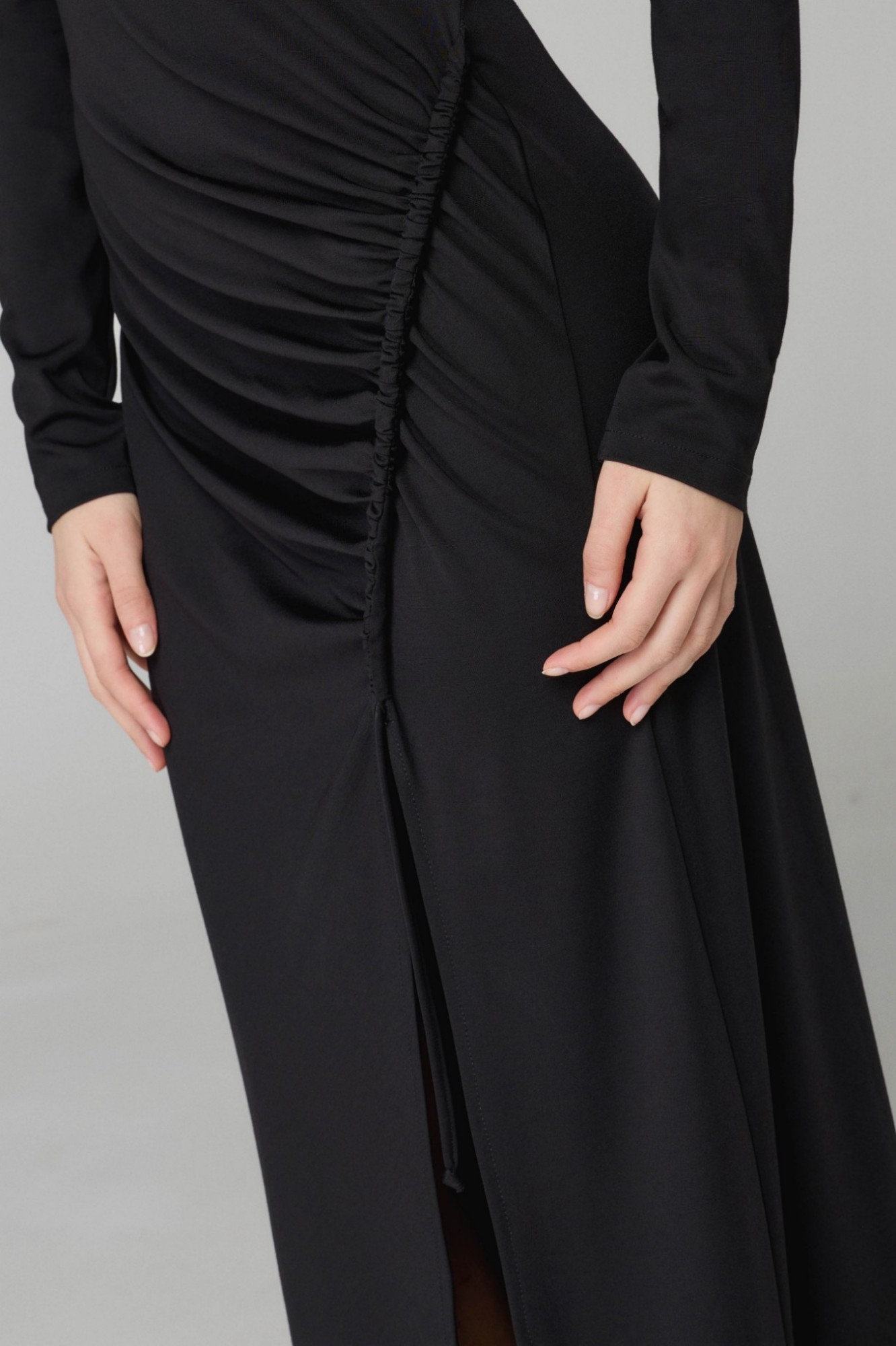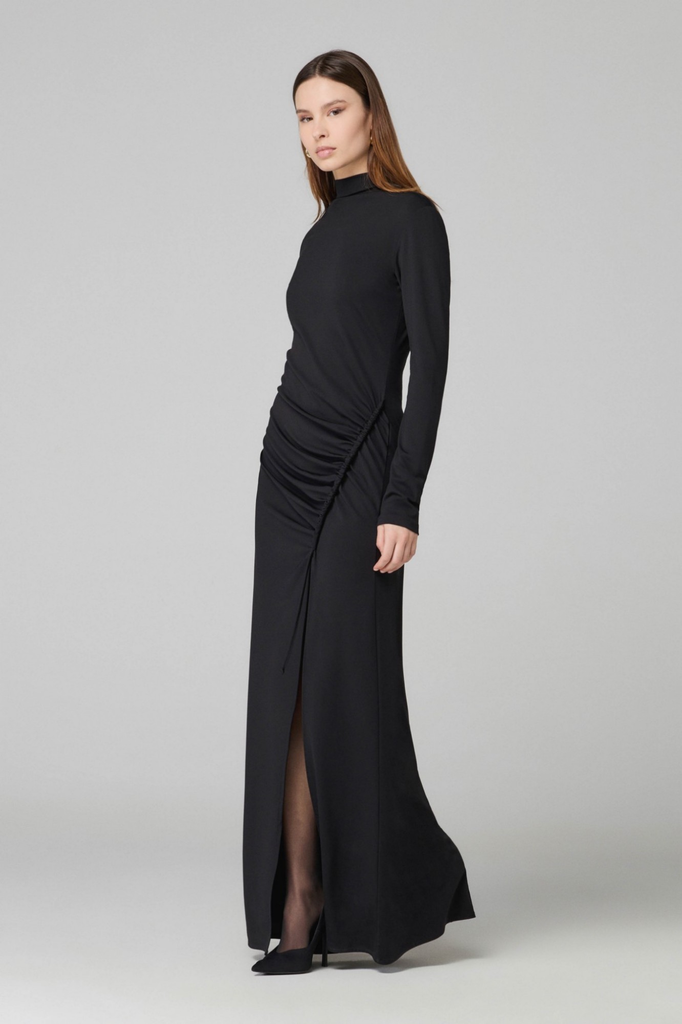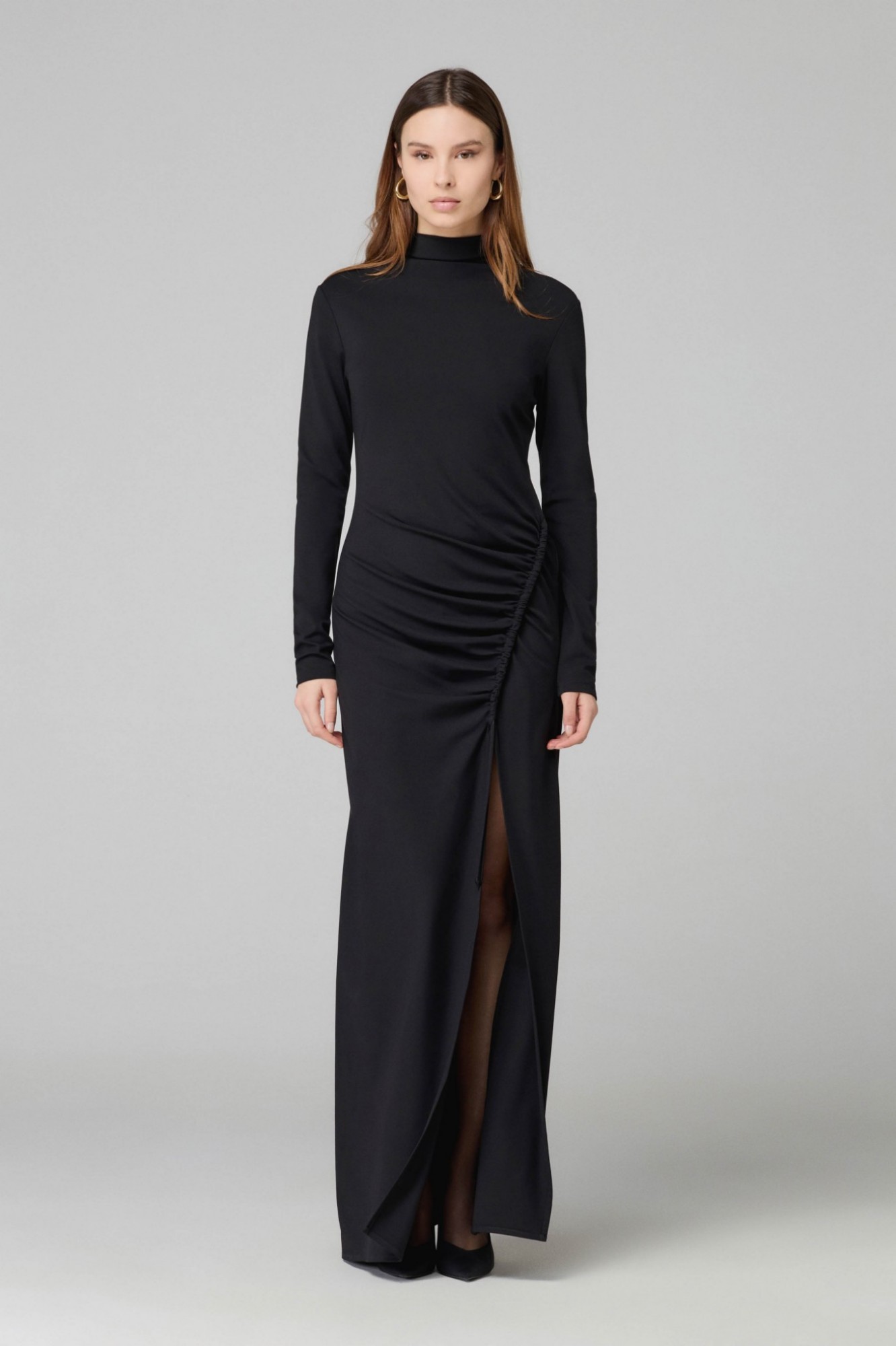 Silvy – Abito Lungo A Lupetto Con Arricciatura, Spacco Sul Davanti In Viscosa