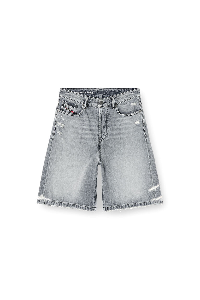 Questi bermuda da donna a vestibilità rilassata sono realizzati in denim rigido di cotone 100% rigenerativo. Il lavaggio grigio è arricchito da abrasioni e strappi sugli orli per un look disinvolto. La silhouette al ginocchio presenta la classica costruzione a cinque tasche.