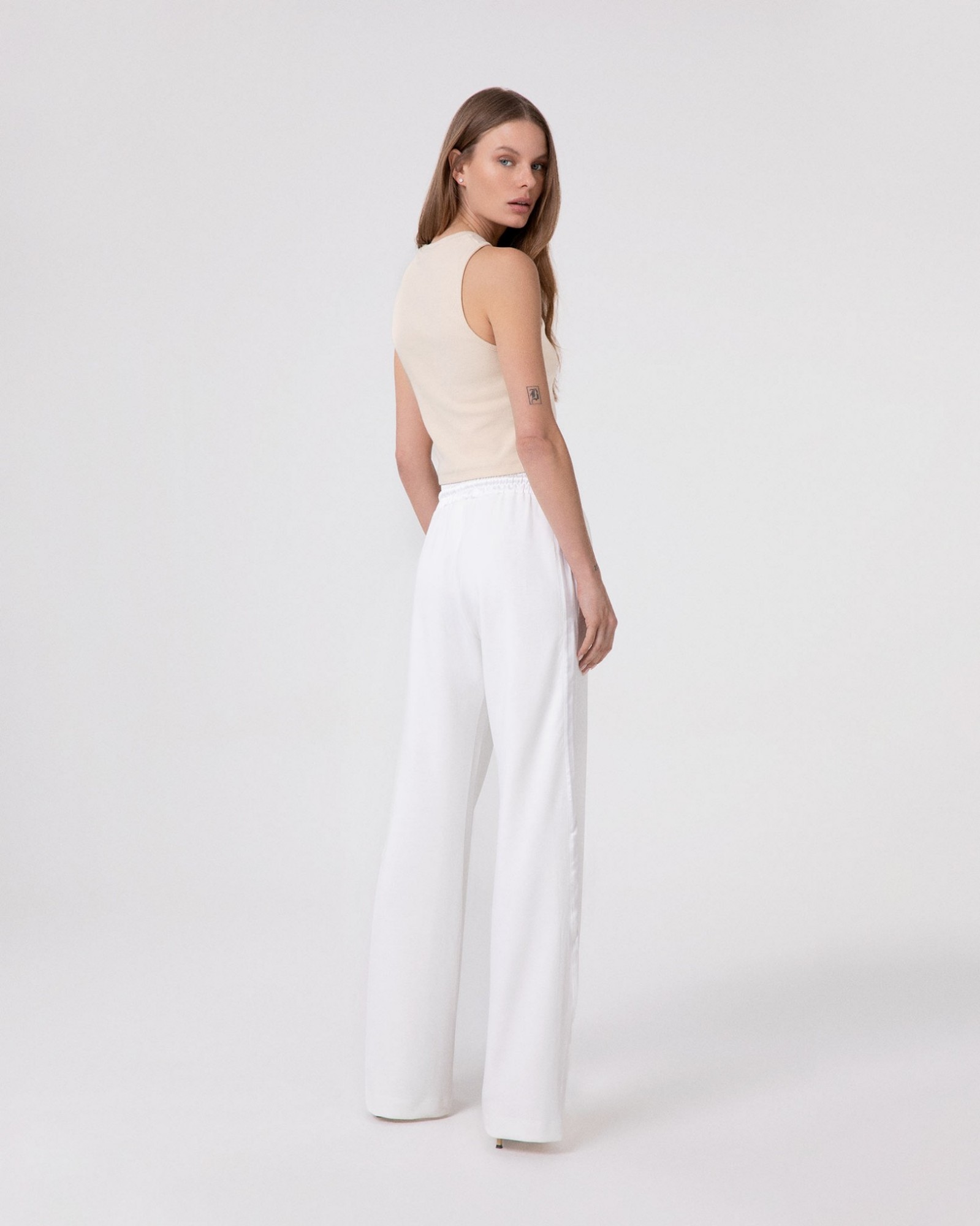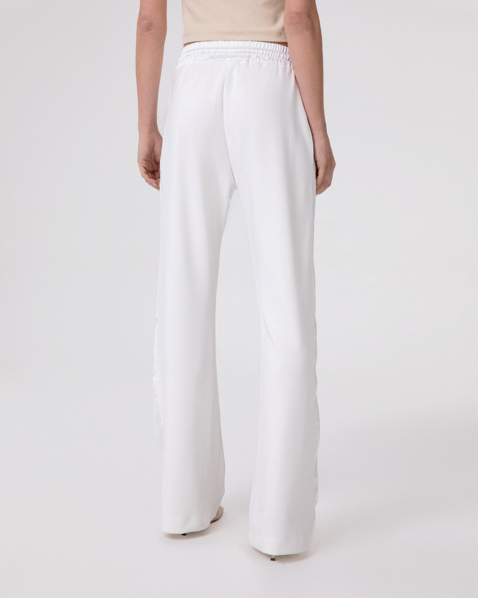 Pantalone Dritto Vita Alta In Viscosa Con Inserti In Raso