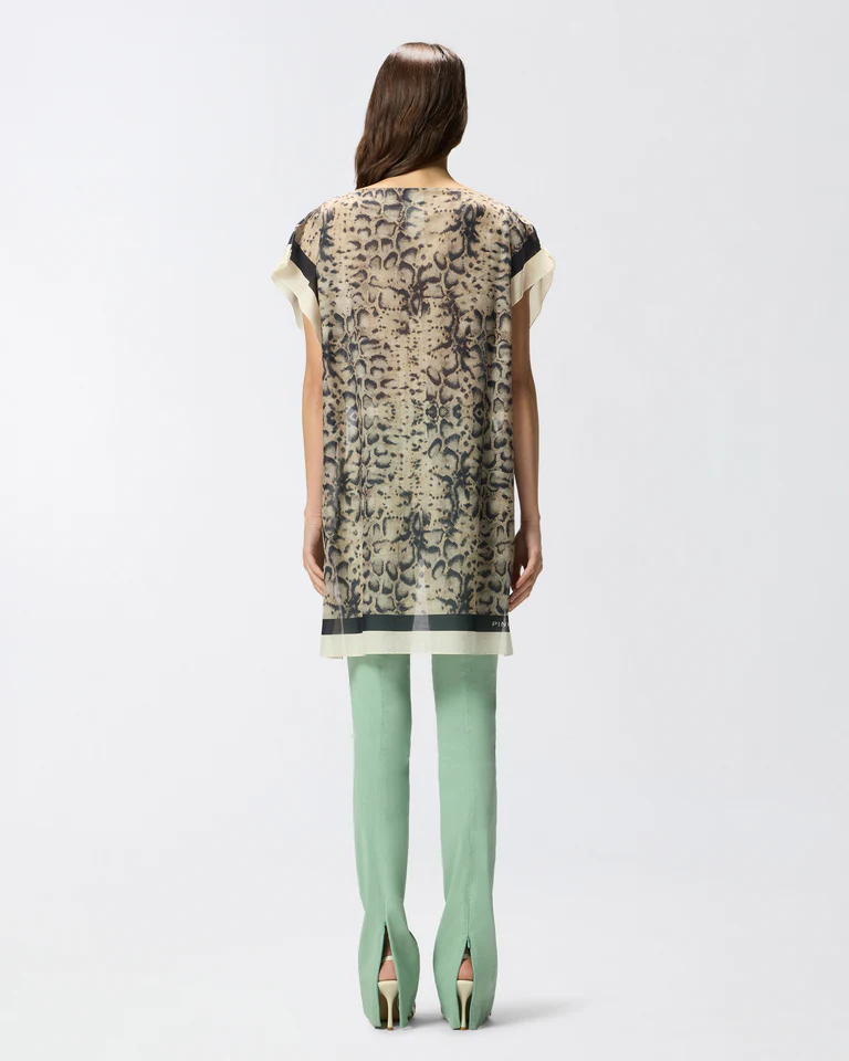 Caftano con maniche corte e scollo a barchetta realizzato in morbida e resistente tela di puro cotone. Il modello è caratterizzato da un’accattivante stampa snake all over con bordi a doppia riga a contrasto, ed è completato dall’iconico logo lettering PINKO a fondo capo. Abbinalo agli shorts pareo coordinati per un look femminile e magnetico da indossare in spiaggia o a bordo piscina.