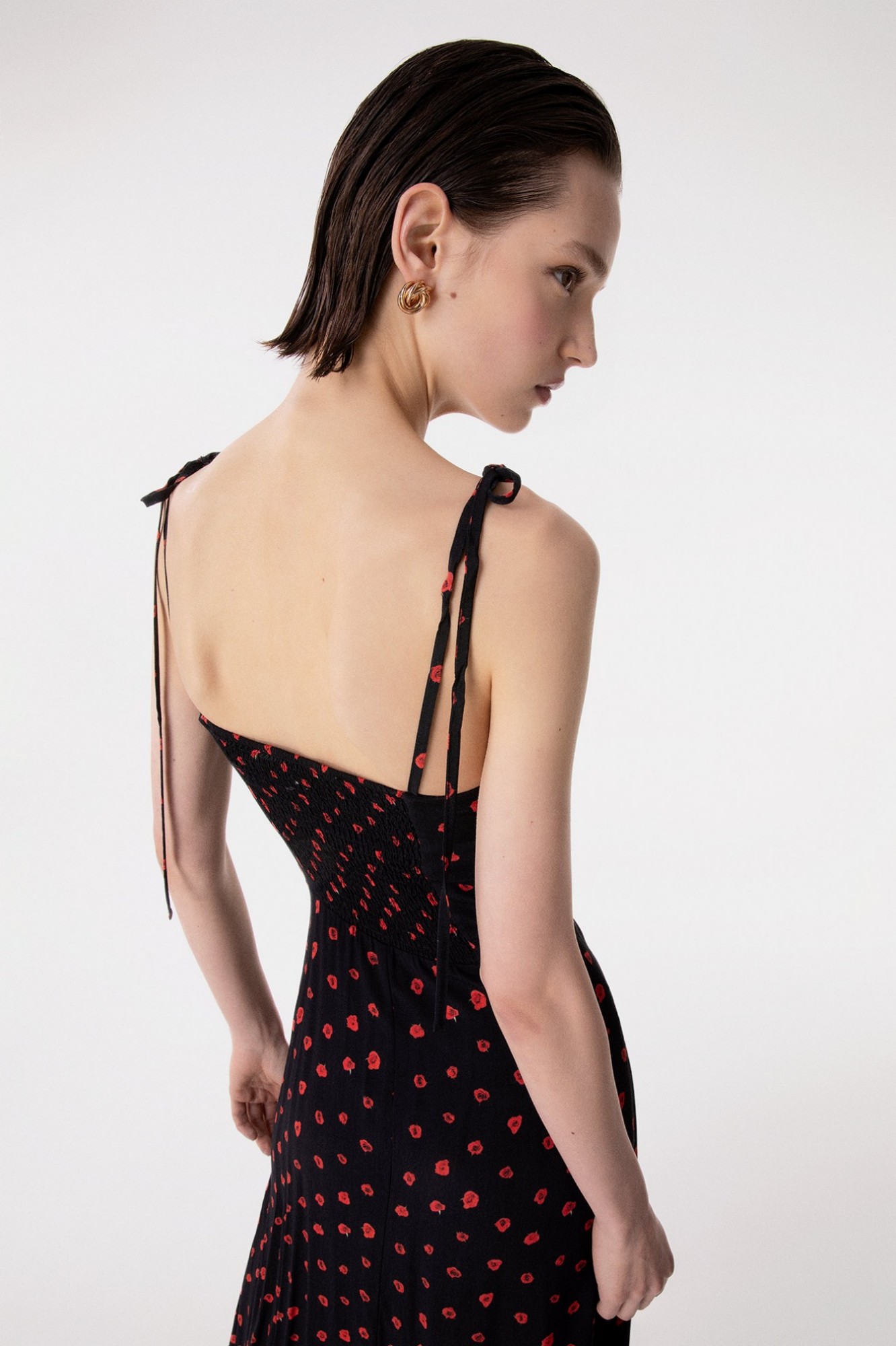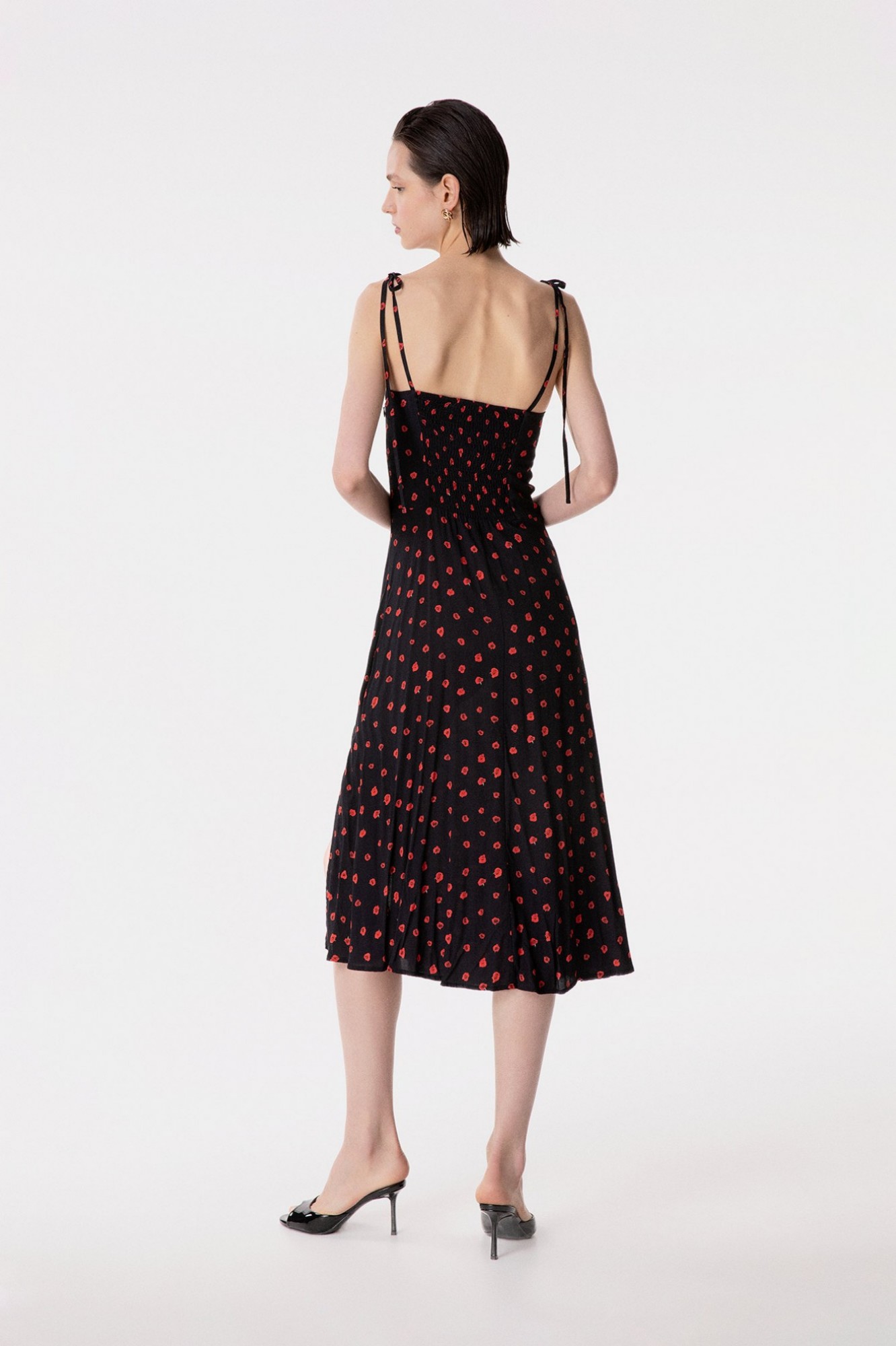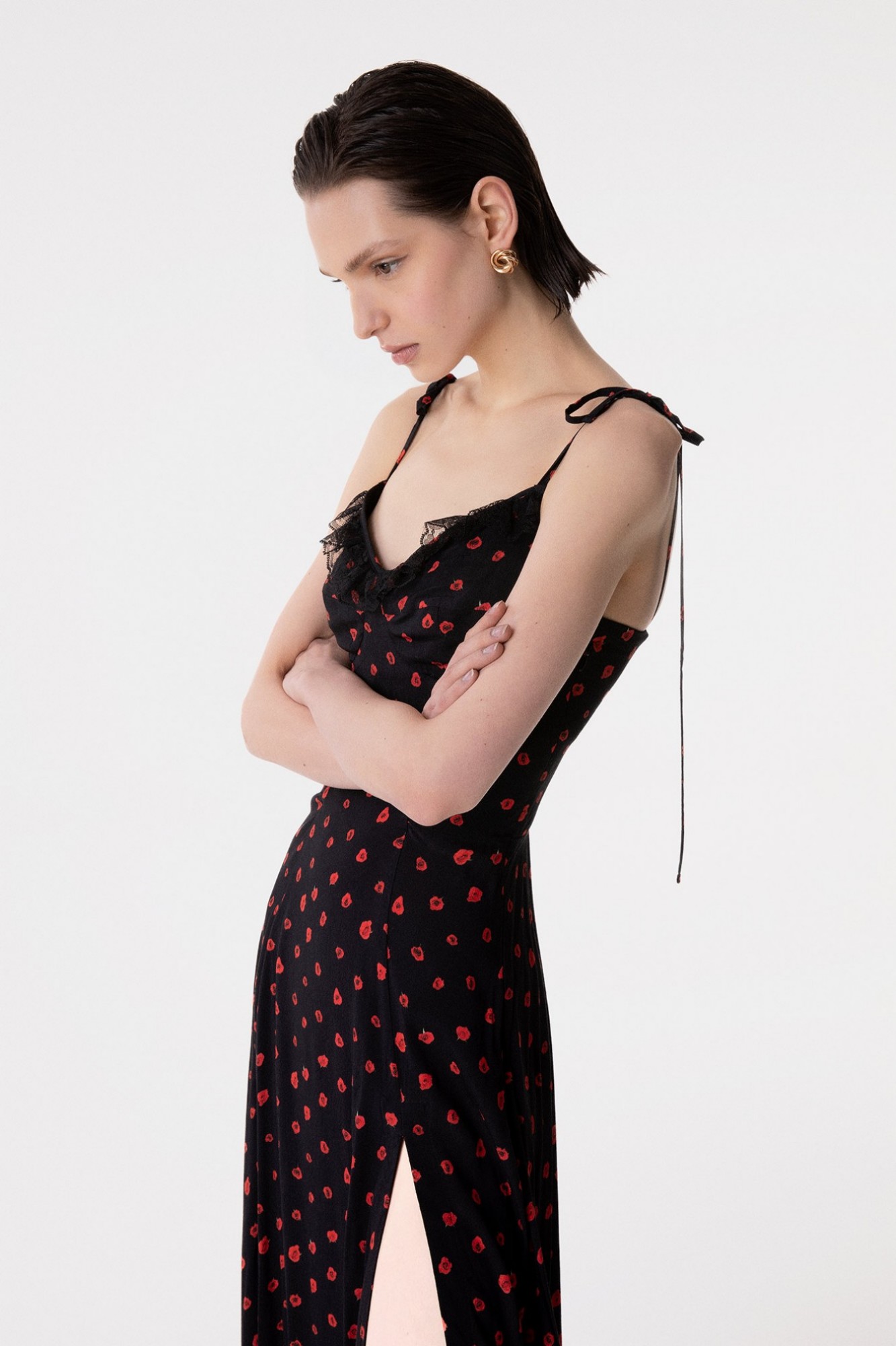 Priscilla – Abito Midi In Crepe Con Rouge Sulla Scollatura E Spacco Laterale